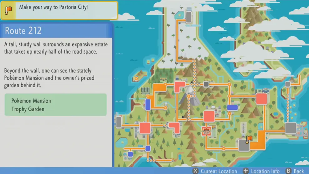 There are a ton of optional areas and secrets to be found when adventuring through the region of Sinnoh in Pokemon Brilliant Diamond and Shining Pearl. Going through 212 from the Pastoria City side will be a bit rough given that a lot of the terrain is muddy. The Pokémon Brilliant Diamond Shining Pearl remakes faithfully recreated the Sinnoh region 15 years after the original games released with the Trophy Garden including rare and baby Pokémon for players to find.